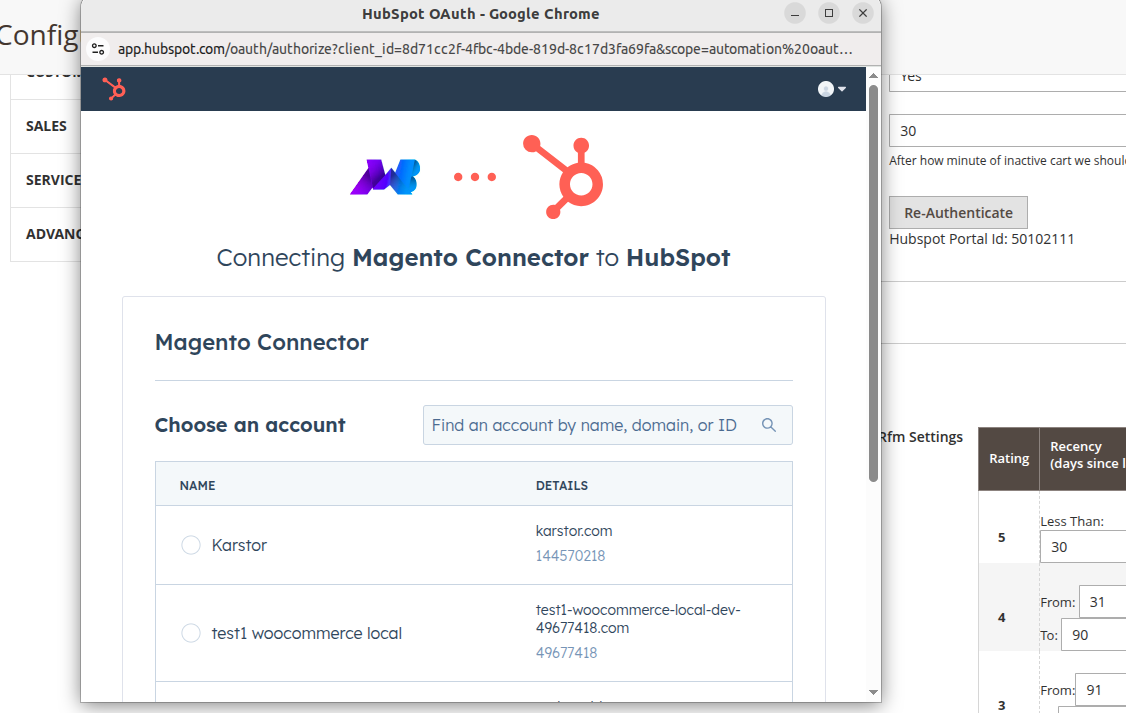 This is only a demo, thus it is showing Re-authenticate. In your account, “Authenticate” will be displayed.Click on the Authenticate button, and you’ll be asked to choose the HubSpot account you want to connect with the plugin.