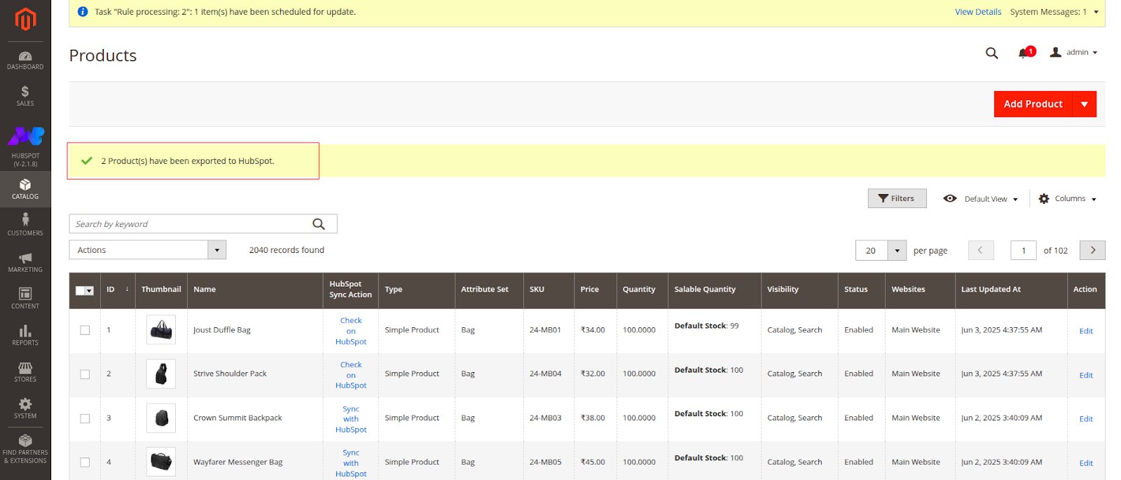 Click on the Export to HubSpot option and the products will be exported to HubSpot. Once the products are exported, you’ll see a message.