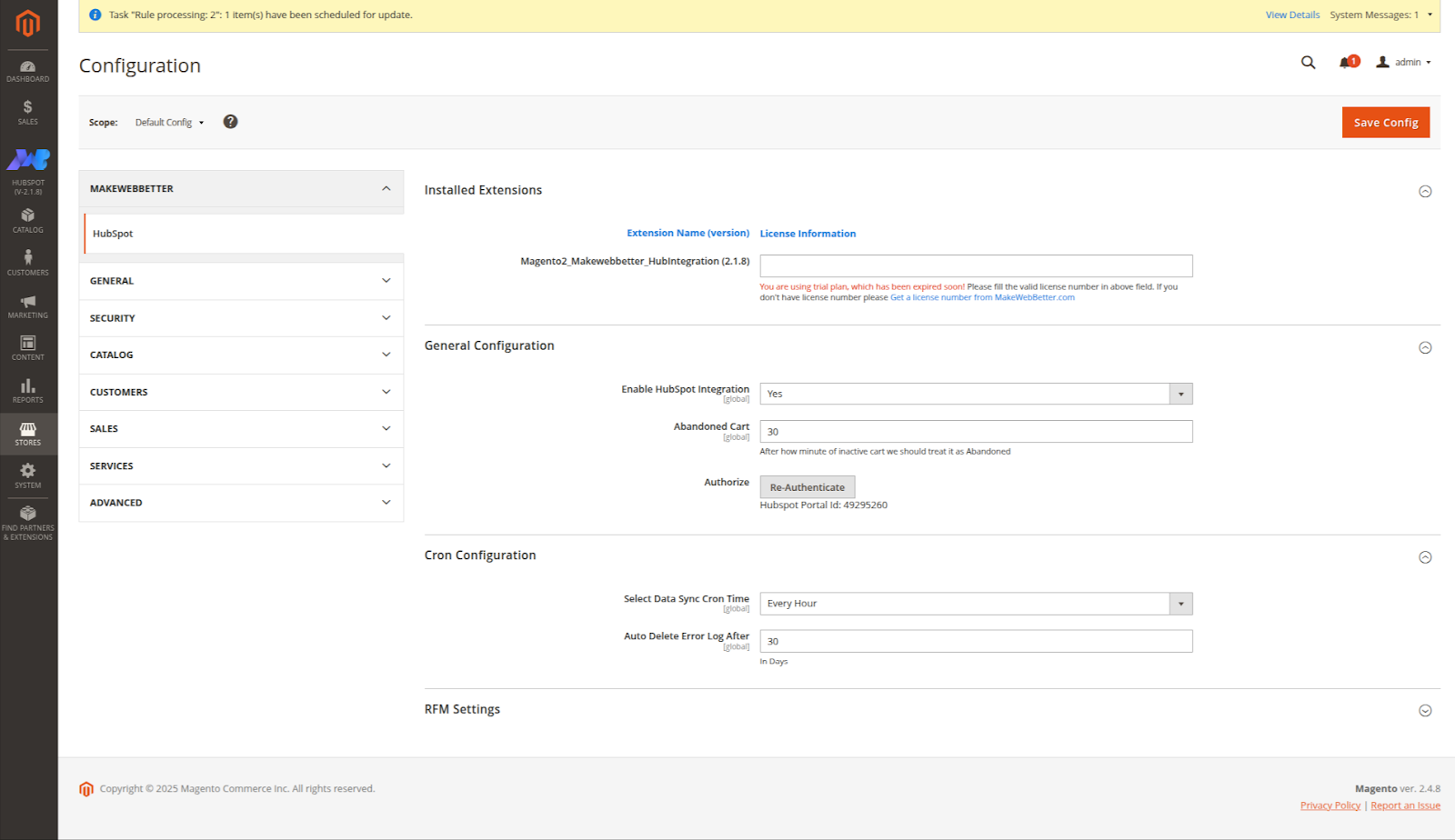 The first step in the process of integrating your Magento 2 store with HubSpot is the Configuration.