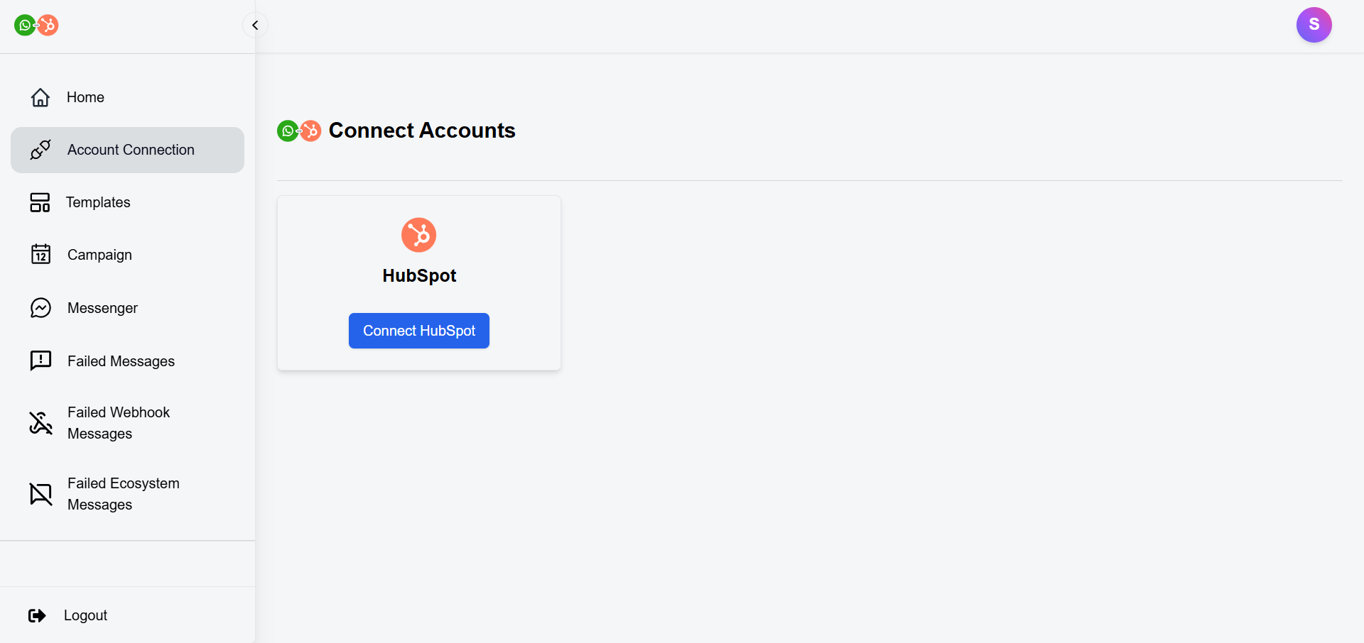 To start using the functionalities, you would need to connect your HubSpot account and also add a WhatsApp Business account using Meta/Facebook credentials.