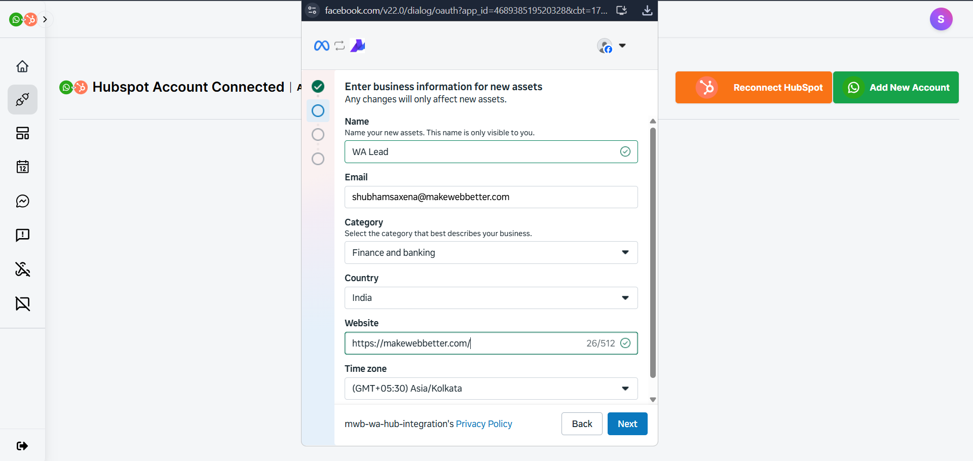 • Finally, click Connect App to complete the first stage of WhatsApp HubSpot integration.