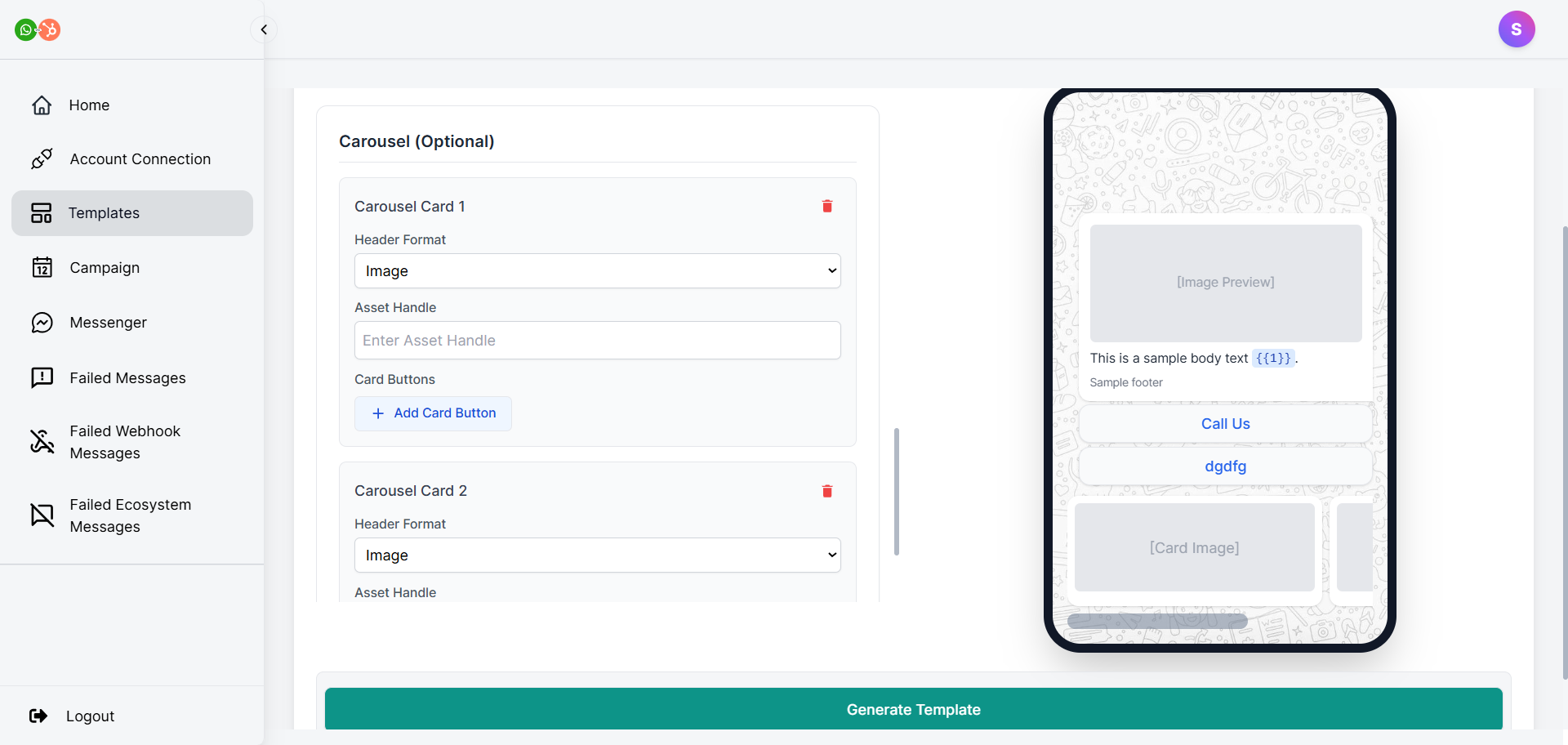 Note: These variables {{1}}, {{2}}, and so on, are the placeholders that fetch data directly from the uploaded CSV file, based on column order (1, 2, 3, 4). We will learn about it in detail in the next section.