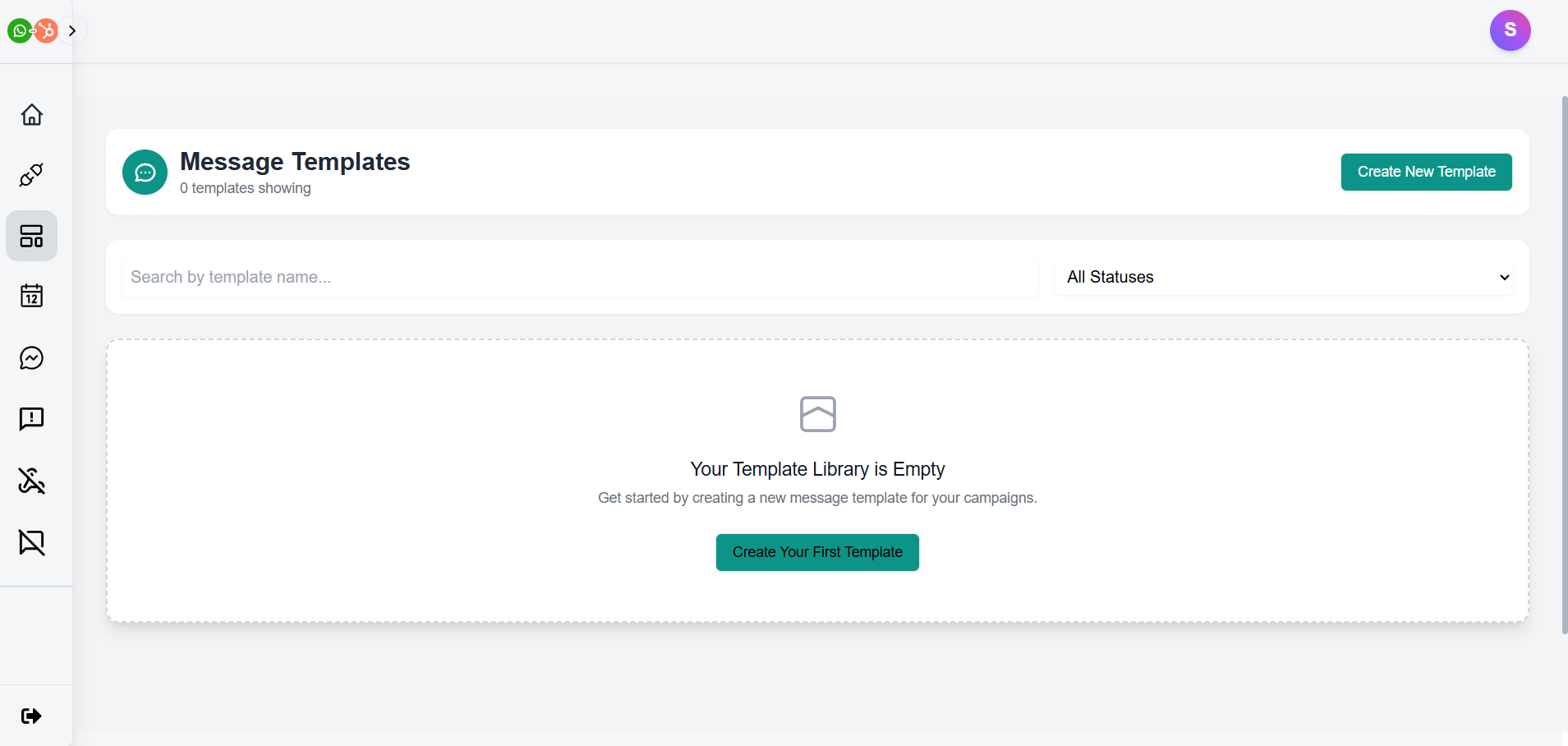 The WhatsApp templates live inside this tab. Here, you can create, submit, save, and manage your templates here. These templates are utilized later while sending, scheduling or automating messages.