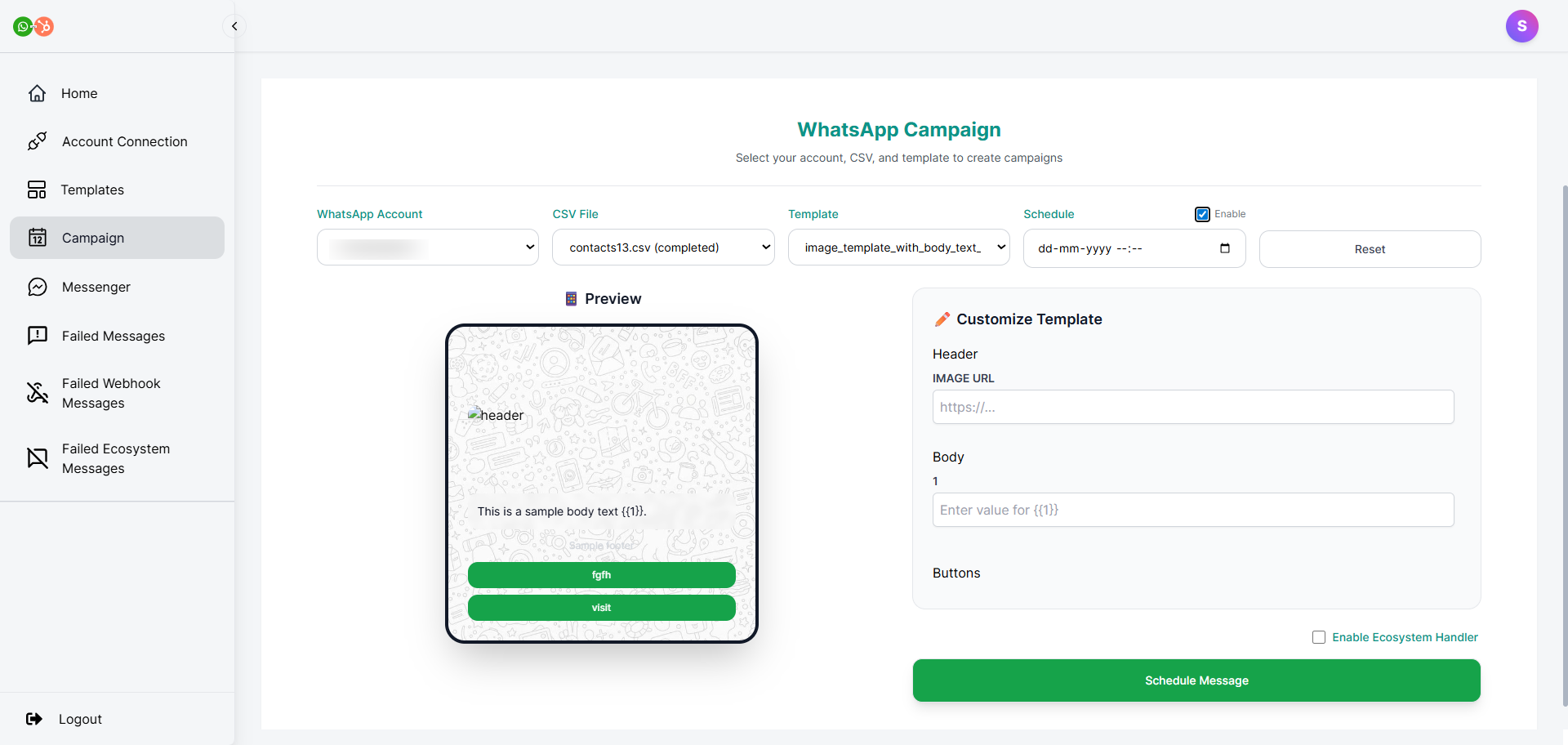 Moreover, you can schedule the message send-out. For this, click on the Enable tick which is next to the Schedule option. There, you can decide on the date on which you want to launch your WhatsApp campaigns.