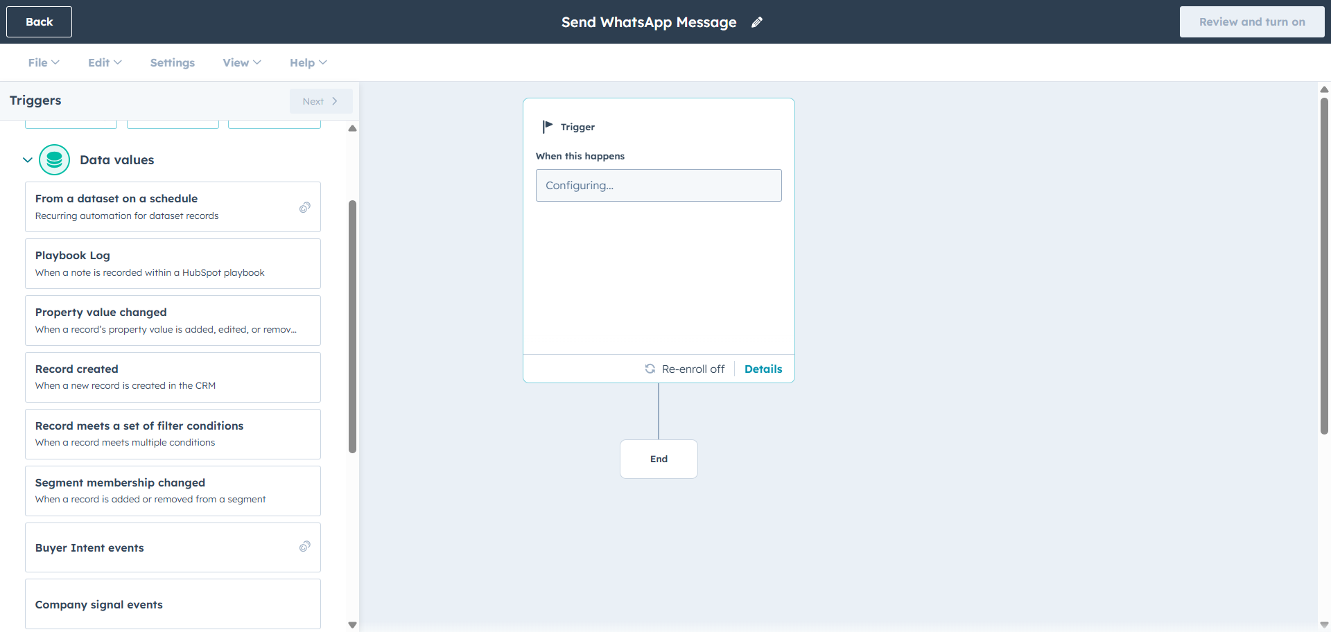 • Once done, click the ‘Review and turn on’ button on the top right.