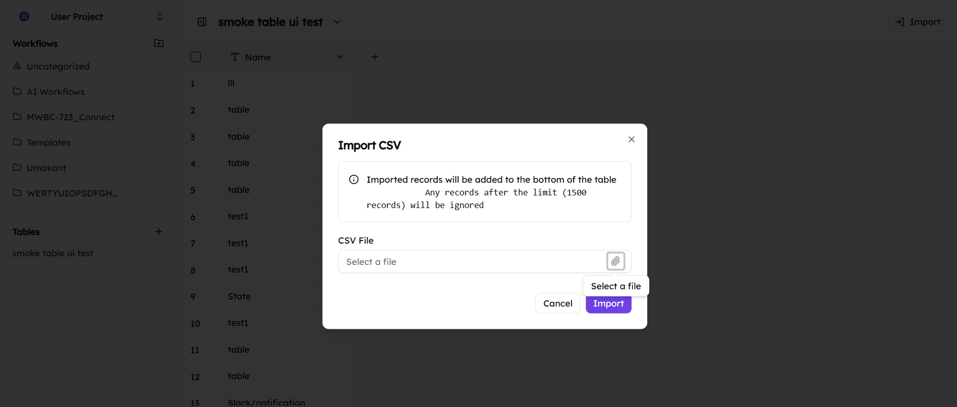 When you navigate to the Workflows section, you can find the option to Import Workflow by clicking on the ‘New Workflow’ dropdown on the right and selecting the ‘From Local File’ option.