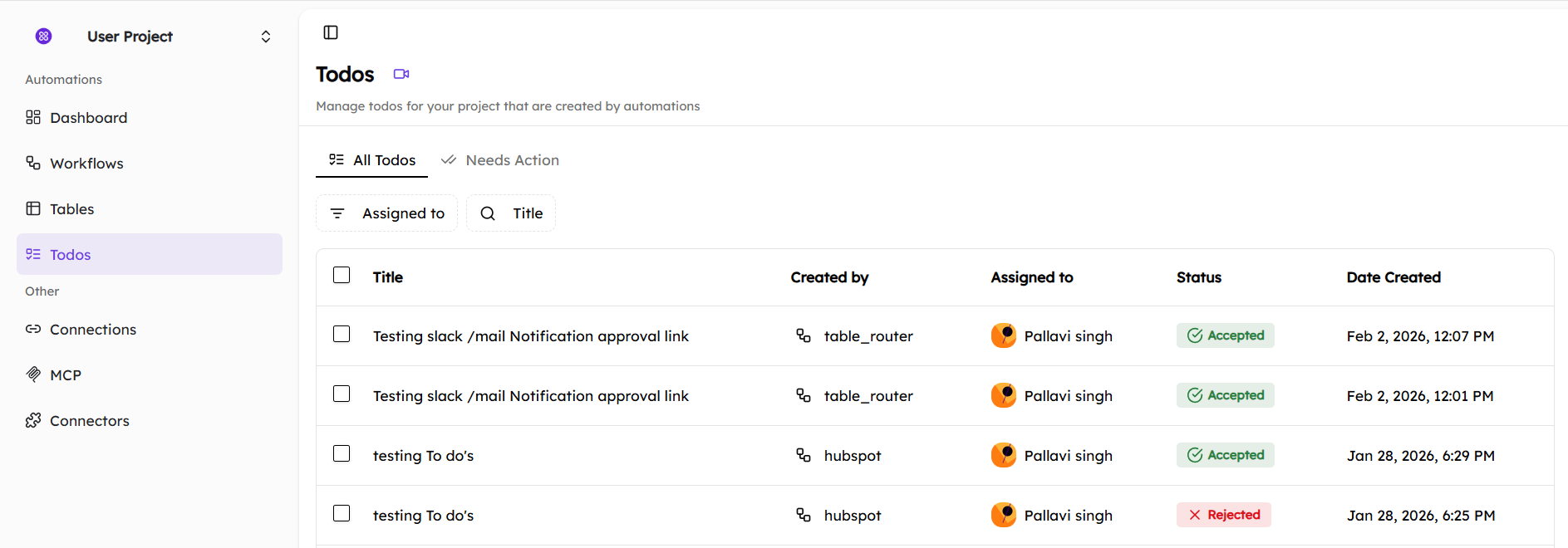 - Todo: A todo is a task created by a workflow that requires human intervention, such as review or approval, before automation continues.