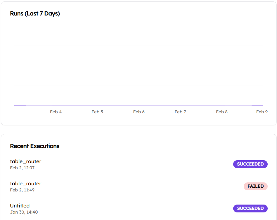 This section shows a visual chart of workflow executions over the past 7 days. It helps you: